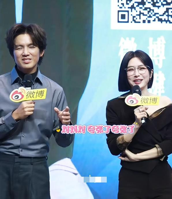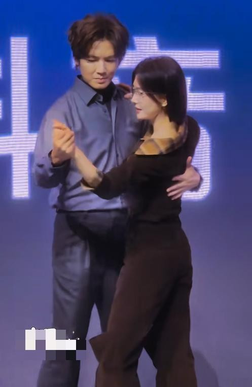 活动上让俩人互动,搞点亲近的动作。秦岚倒是挺大方的,想让钟汉良跟她一起对着台下比个心。
